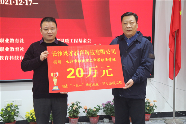 兴才兴职教,融城融发展。 12月17日,湖南一家一助学就业同心温暖工程致公乡村振兴班在长沙市融城理工中等职业学校开班,由长沙兴才教育科技有限公司捐赠20万元,资助长沙市融城