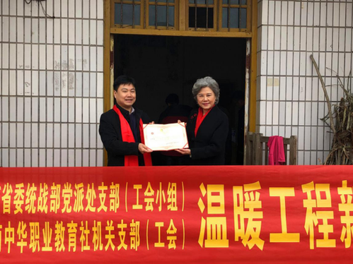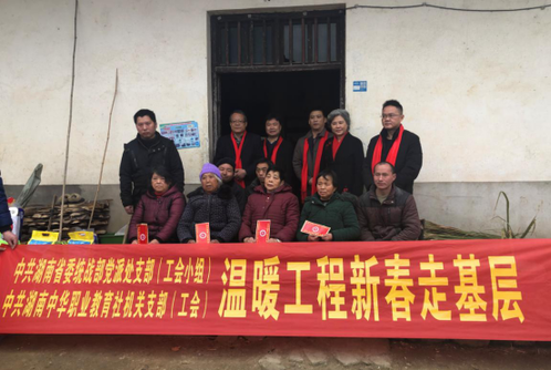 新春时节送温暖,支部扶贫暖农家。1月30日,省委统战部党派处支部、湖南中华职教社机关支部联合开展以“温暖工程新春走基层”为主题的党日活动,赴宁乡市青山桥镇田坪村、巷子口镇扶风村走访慰问残疾智障人士家庭,为她们送去慰问金和大米、食用油、棉被等物资,也为她们送去新春祝福。