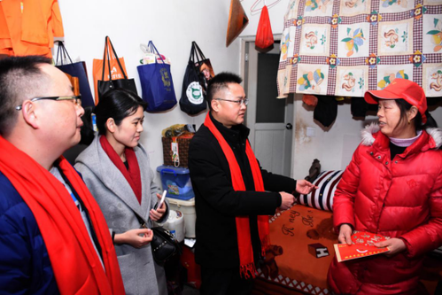 谭圣林(右2)为徐巧明送上慰问金和新春祝福