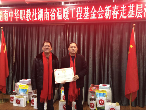 “为国分忧、为民效力,急人所急、雪中送炭,灯亮一盏、光洒成片。”这是中华职教社温暖工程实施20多年来的行动宗旨。1月26日,湖南中华职教社、湖南省温暖工程基金会组织机关干部、爱心人士、热心网友、心理专家开展温暖工程新春走基层活动,走访慰问宁乡市职业中专学校特困师生和宁乡市、岳麓区残疾智障人士母亲,为他们送去慰问金和大米、食用油、棉被等物资,同时进行个性化心理辅导。